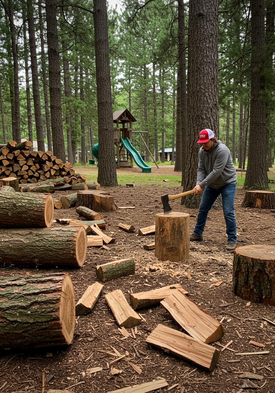 Lodgepole pine and fir await further cutting and splitting in a Glenshire neighborhood, photo by Sylas Wright