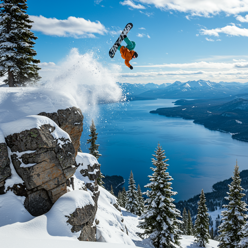 Finding a natural lip just large enough to launch from, I positioned myself mid-island, 40 feet above the icy waters of Lake Tahoe. It was a moment of nerve-wracking suspense—one mistake, and I could end up plunging into the lake below. But the thrill of the challenge outweighed the fear.