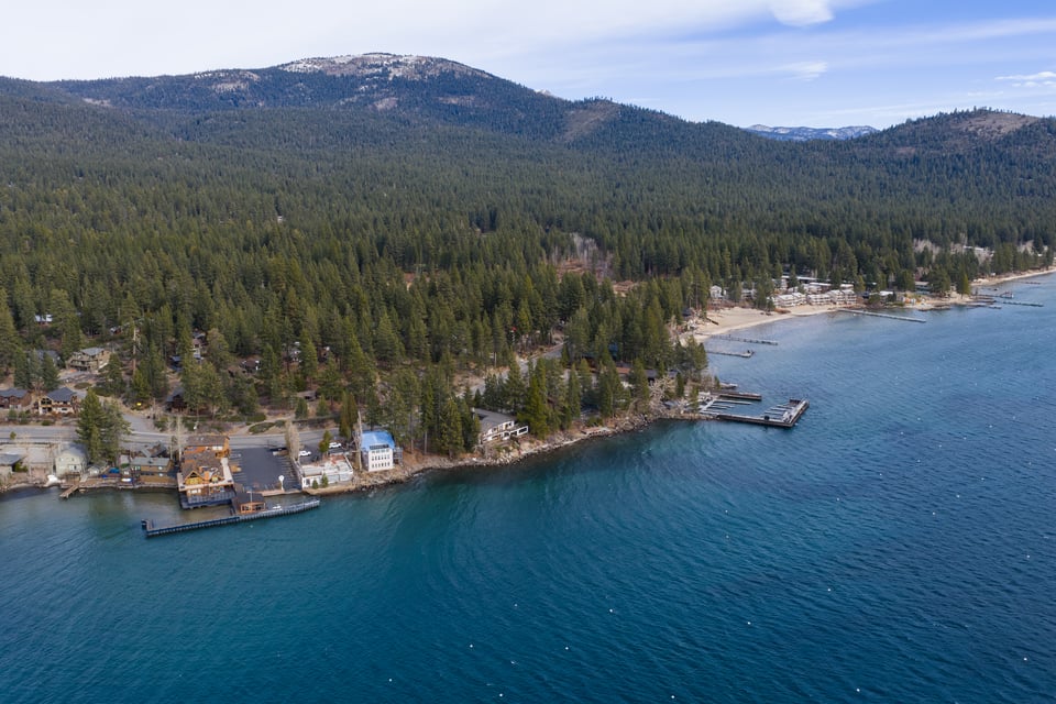 As true north as it gets on the lake. Panoramic lake views of east, south and west Lake Tahoe. Exceptional opportunity to acquire a lakefront property on Lake Tahoe’s North Shore with existing mixed-use from residential to hospitality to recreational. Located along North Lake Boulevard in Tahoe Vista next to North Tahoe Marina, this property offers approximately 100 feet of lake frontage, two dedicated buoys, expansive lake views, and a unique combination of residential, tourist accommodation, and commercial space. The existing improvements include six tourist accommodation units with kitchens, a two-bedroom owner’s residence, another two bedroom two bath, a two car garage, 15 parking spaces and approximately 1,700+/- square feet of commercial space, historically operated as a neighborhood-serving business. Multiple lake-facing decks and direct access to the shoreline create a rare and compelling setting not commonly found along the North Shore. The property lies within the jurisdiction of Placer County and the Tahoe Regional Planning Agency (TRPA) and is located in an area that allows for a range of uses consistent with applicable zoning and community plans. A prior third-party planning feasibility study (available upon request) evaluated potential future uses and site considerations from residential condominiums to hospitality; buyer to independently verify all use, zoning, coverage, density, and permitting matters with the appropriate agencies. Highly visible location within the north lake tahoe resort triangle with convenient access to Tahoe Vista amenities, marina, beaches, and year-round recreation. Properties offering lake frontage with existing commercial infrastructure or residential use are